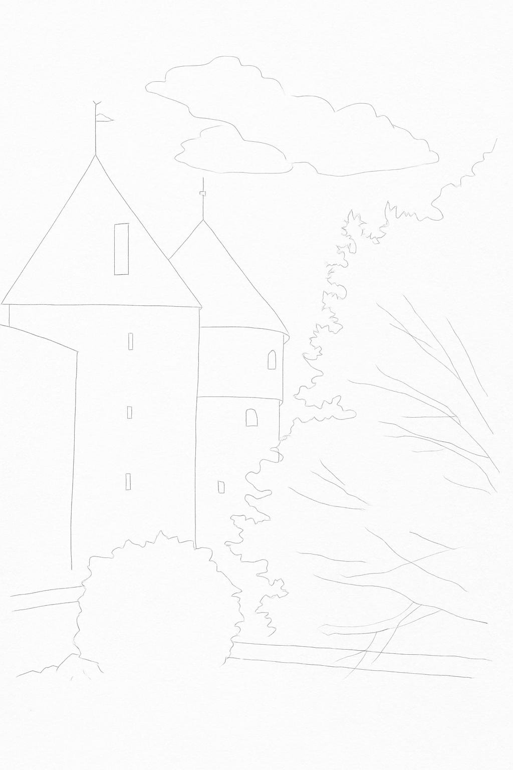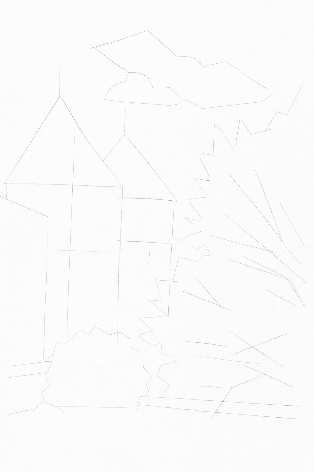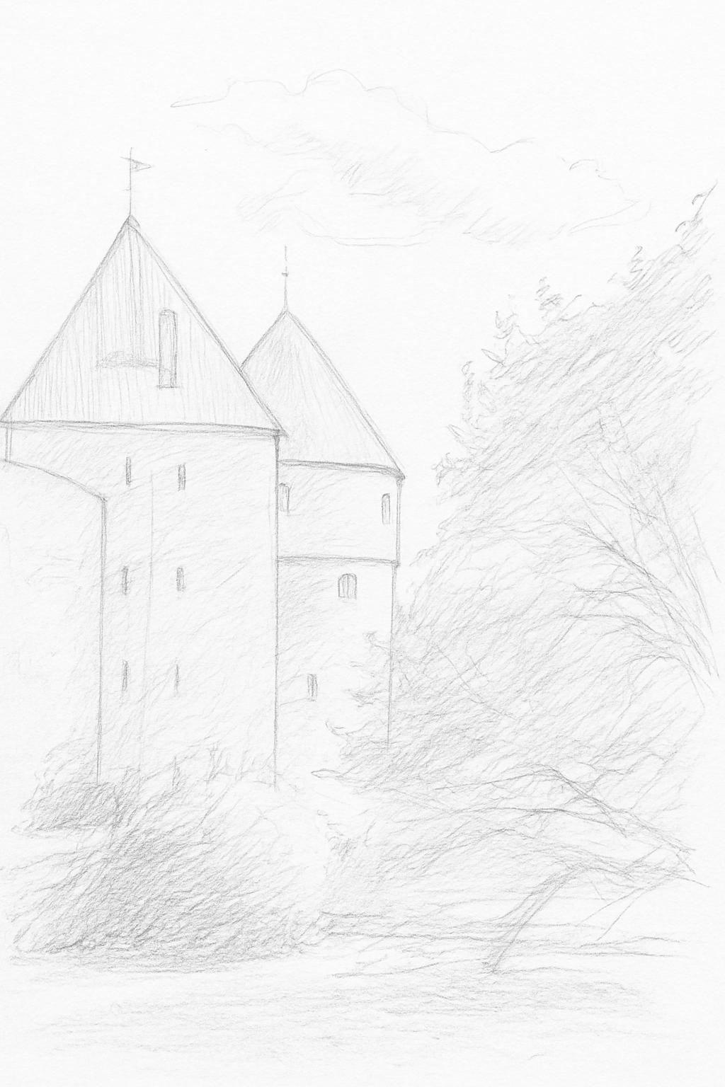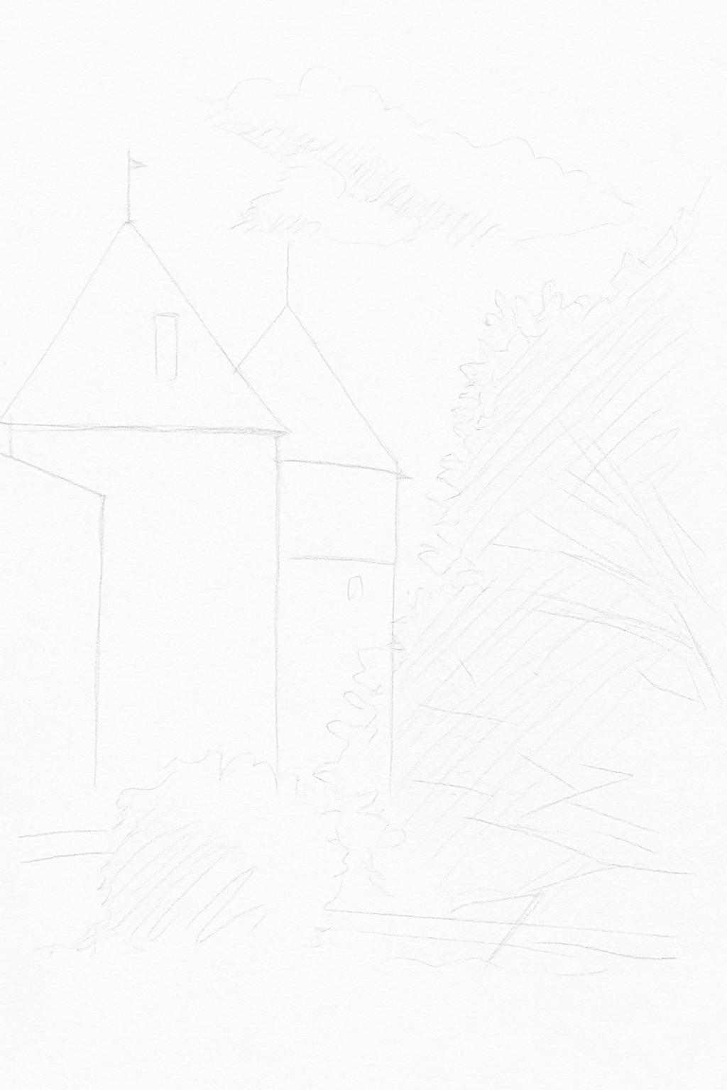 Every drawing starts here! Use a light 2H pencil (or press lightly with any pencil) to map out the basic shapes and get your proportions right with loose construction lines.